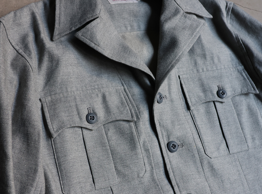 表は以前販売したアノラックと同じテキスタイルで、シダ植物の葉っぱを描いたアロハな柄行