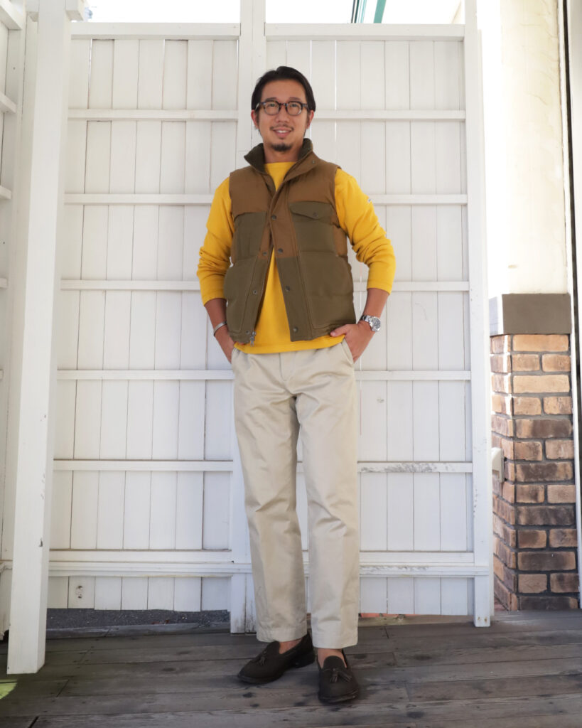 チノにFILSONのダウンベストを合わせました。