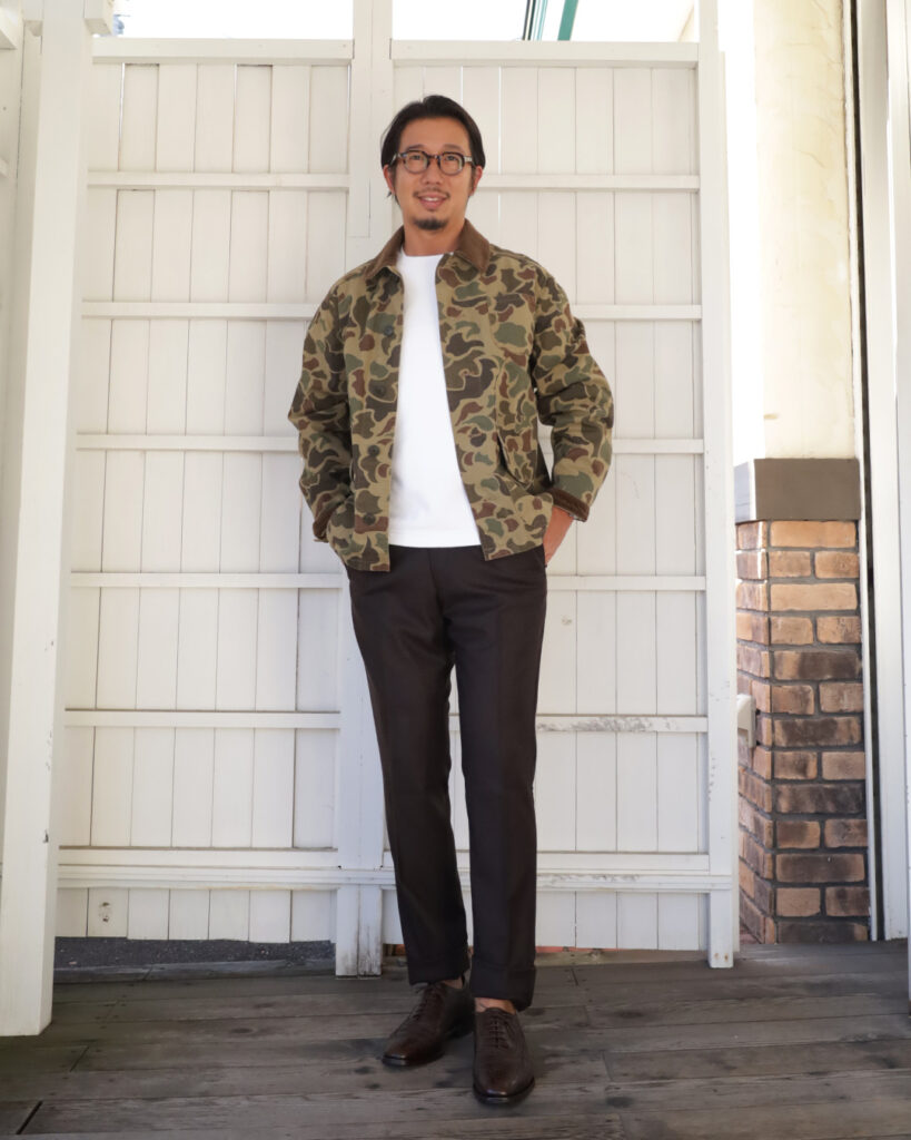 FILSONのキャンバスジャケットにbarnstormerのフラノトラウザーのミックスなスタイルで。