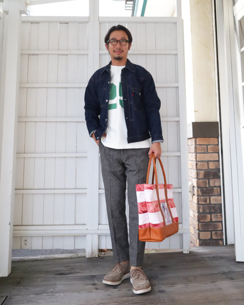 D.C.WHITEのMaineにFILSONのベストを合わせたラギットな着こなしにも似合いますね。