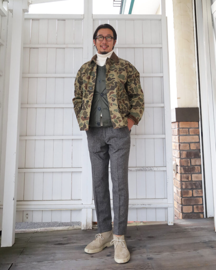 ツイード素材のファティーグパンツなんてまず見ませんので人と被らないってのが個人的にもポイント高し。