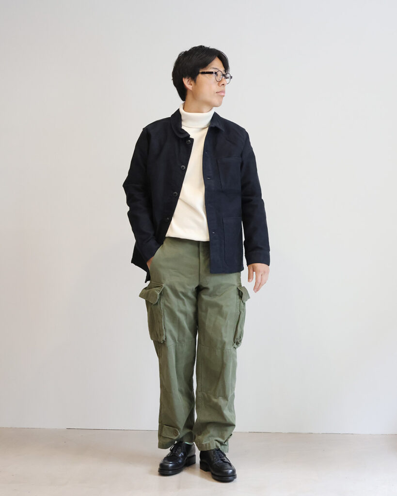 中にWORKERSのコットンセーターを着ていてジャストといったサイズ感です。