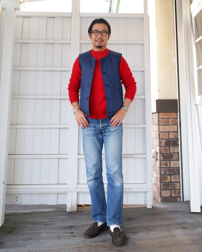 個人的にもインナーダウンのベストを休日に着ることが多く
