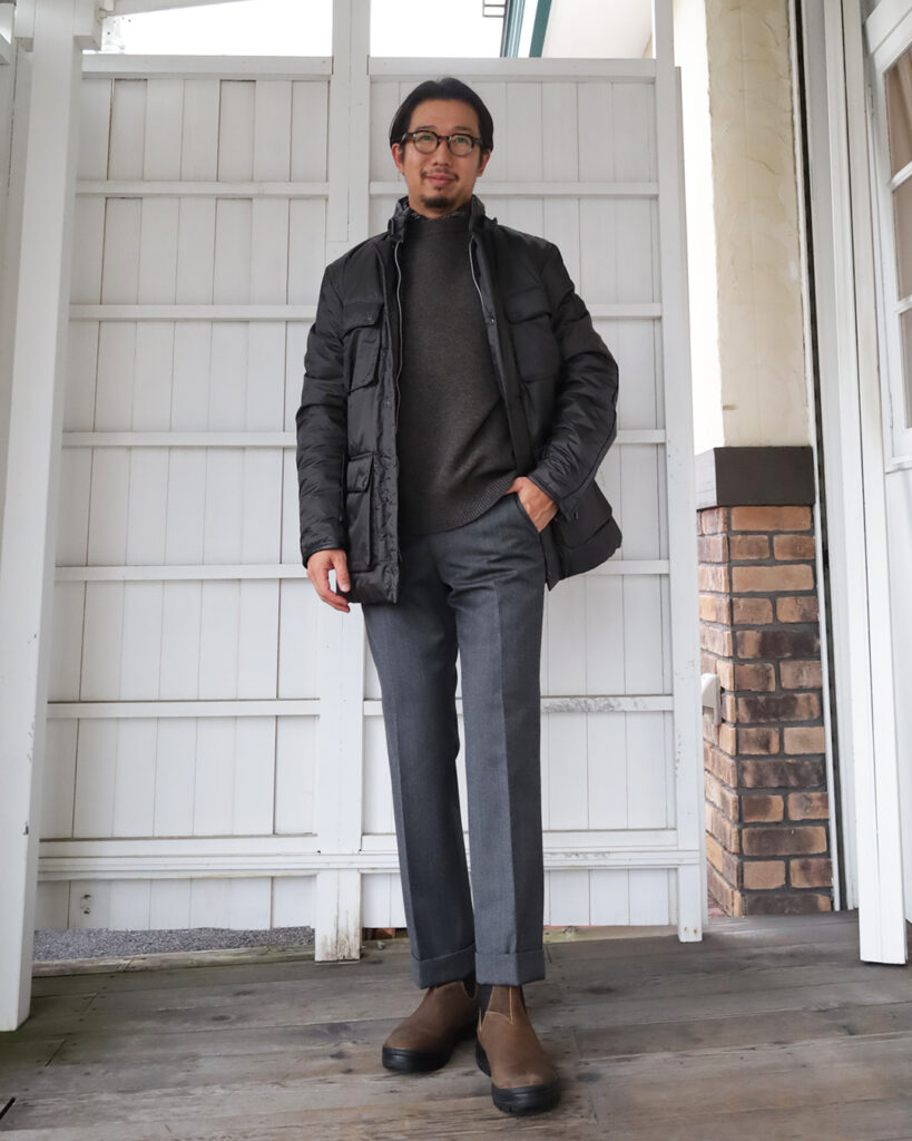 足元はFILSON×BLUNDESTONE。