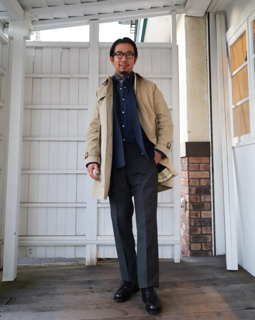 少しフレンチな要素を足したかったので足元はマランジュのウイスキーコードバンのローファーをチョイス。