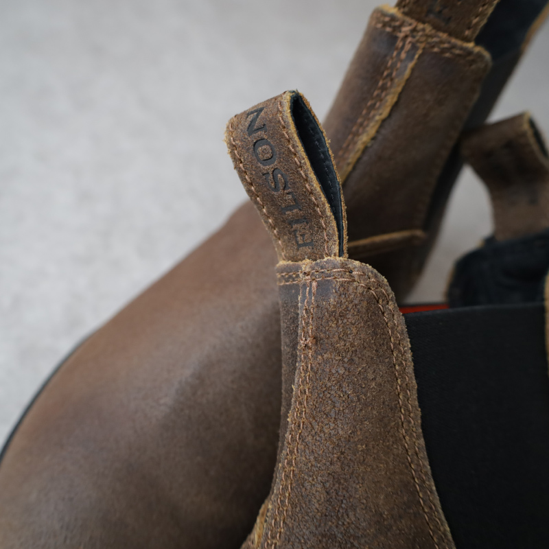 履き口のストラップもレザーを使用し、FILSON、BLUNDESTONEの刻印が入ります。
