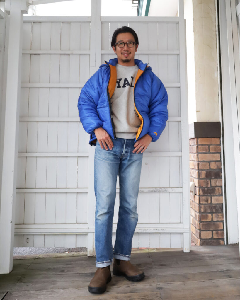 ジーパンにチャンピオンのスウェット、GO LITEのダウンジャケットの王道アメカジのお供にいかがでしょう。