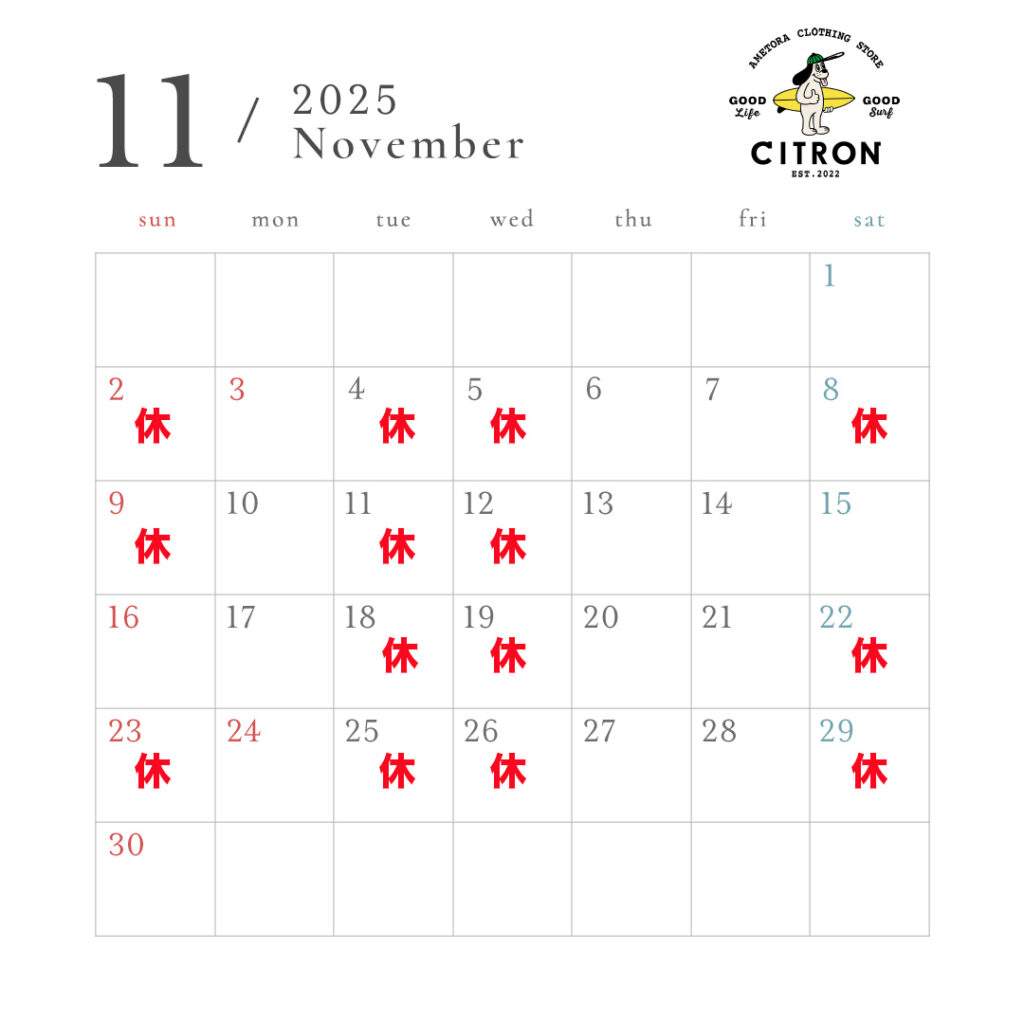 別途お休みする場合はインスタグラム、ブログにてお知らせ致します。