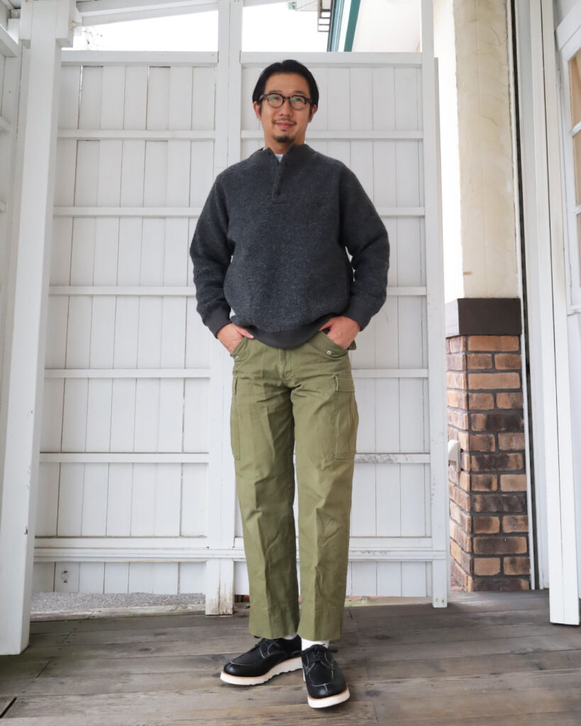 プルオーバーなのでスタイリングも色々とお楽しみ頂けるかと。