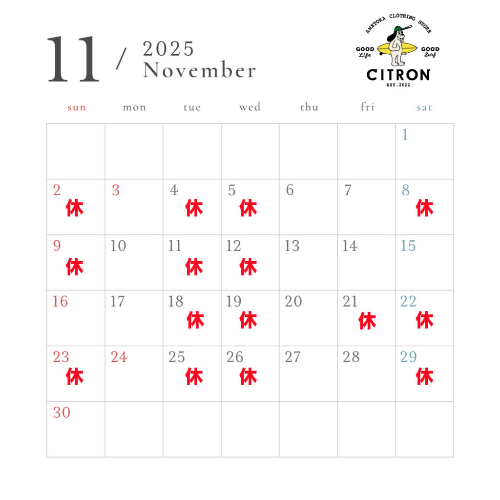 別途お休みする場合はインスタグラム、ブログにてお知らせ致します。