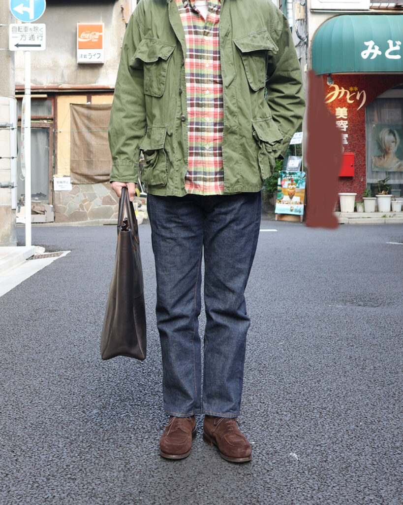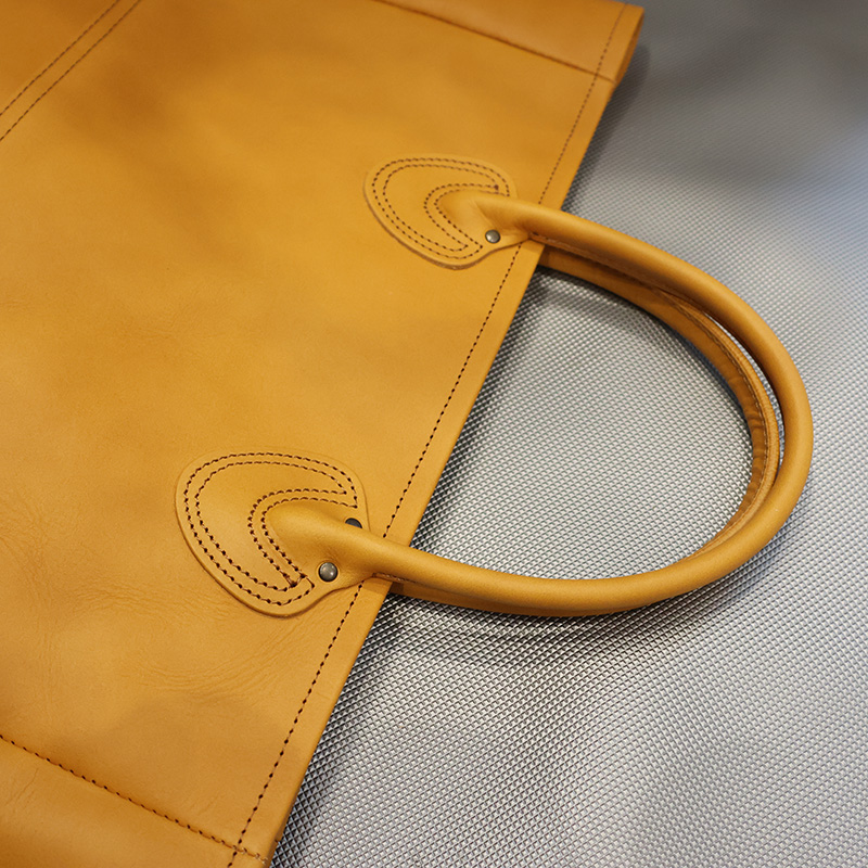 ビンテージアイテムをサンプリングし自身の求めるサイズ感、質感にて作成されたトート