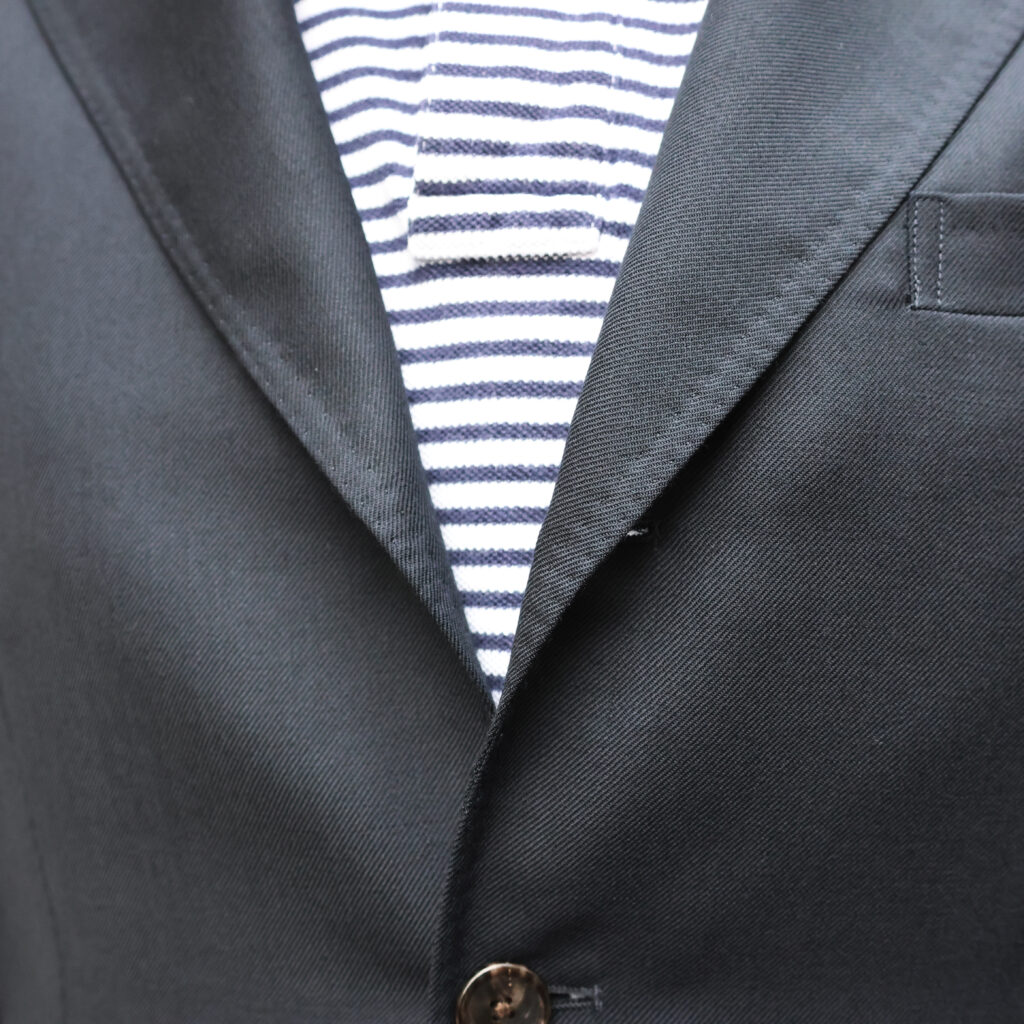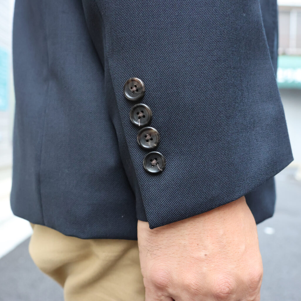 ラペルの柔らかな返りを可能にしている毛芯製法をはじめクロージングと本気で向かい合っているブランドだからこそという作り込みが随所に見られます。