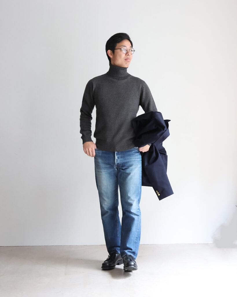 一つ上の男の象徴タートルネック、着こなしてこそかと。
