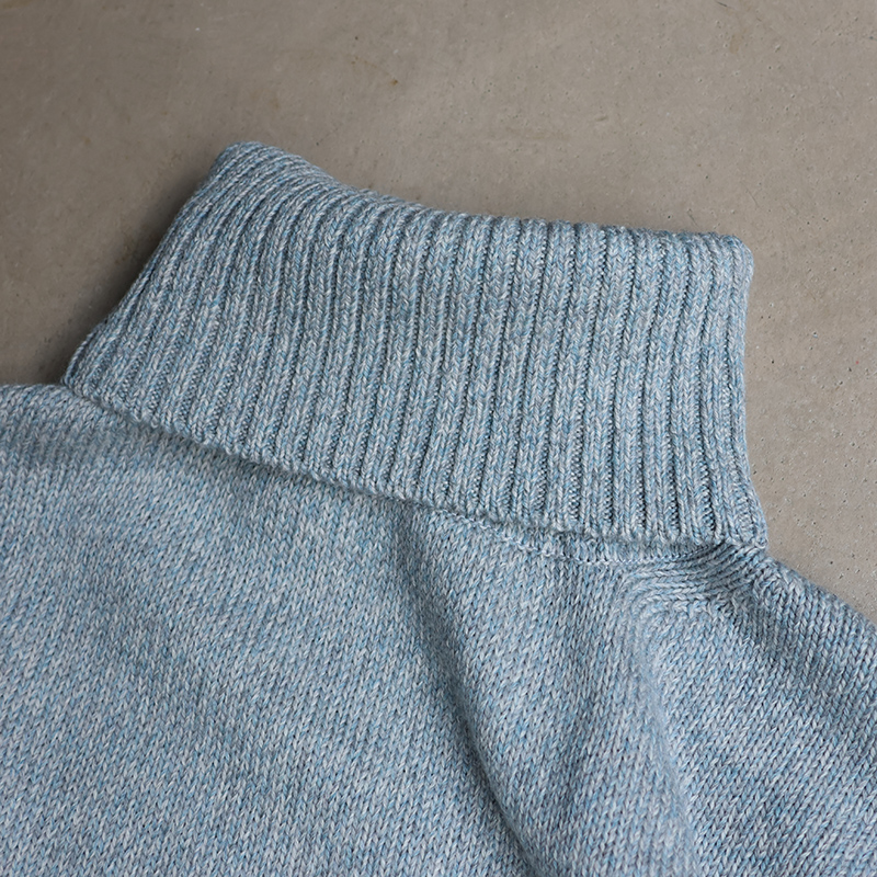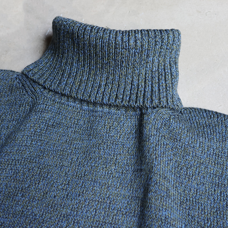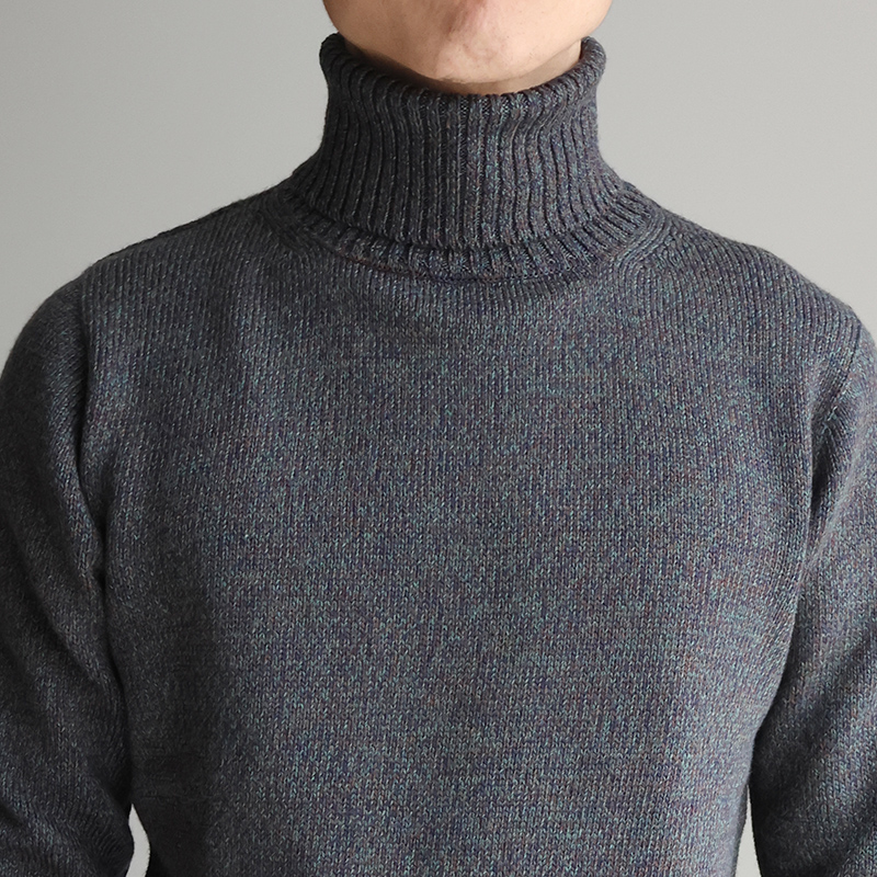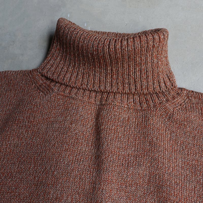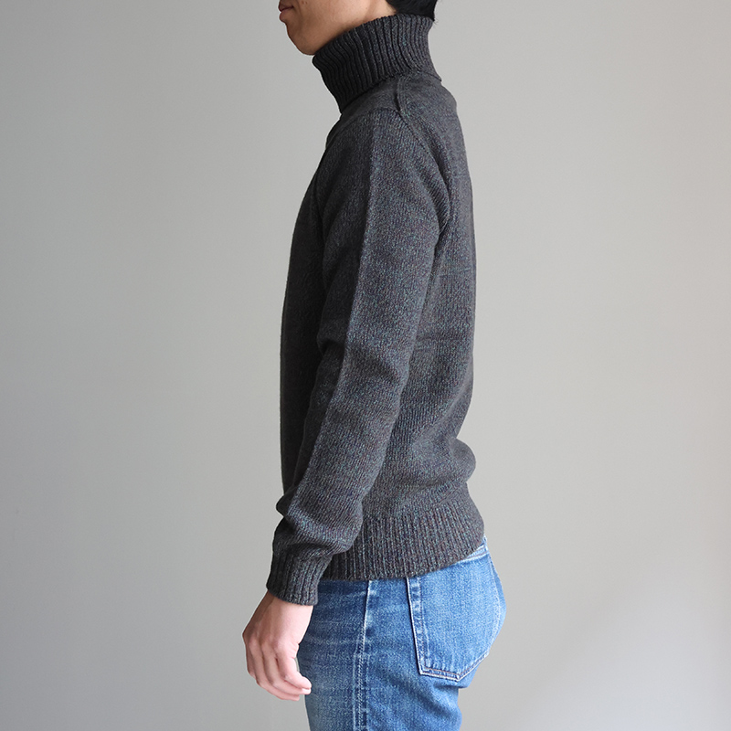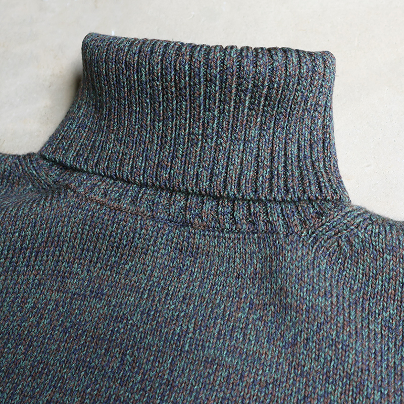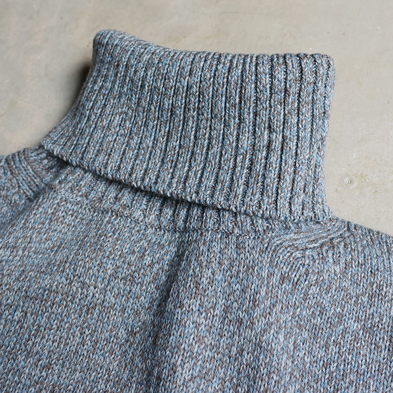 ニットの面積が物理的に広くなるタートルネックは色目の印象が強く残りますが、こちらのメランジェでしたらムッチリモッサリ見えることはなく