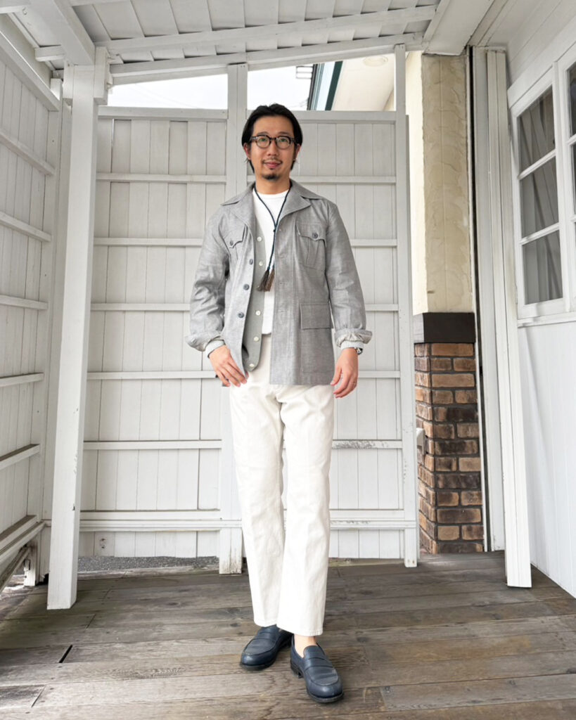 サファリジャケットというとハリ感のあるポプリンやリップストップを連想しますが