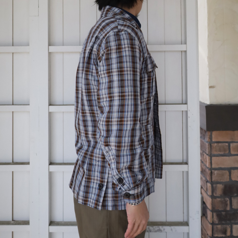 ありそうでないリネンチェックのサファリJKT。