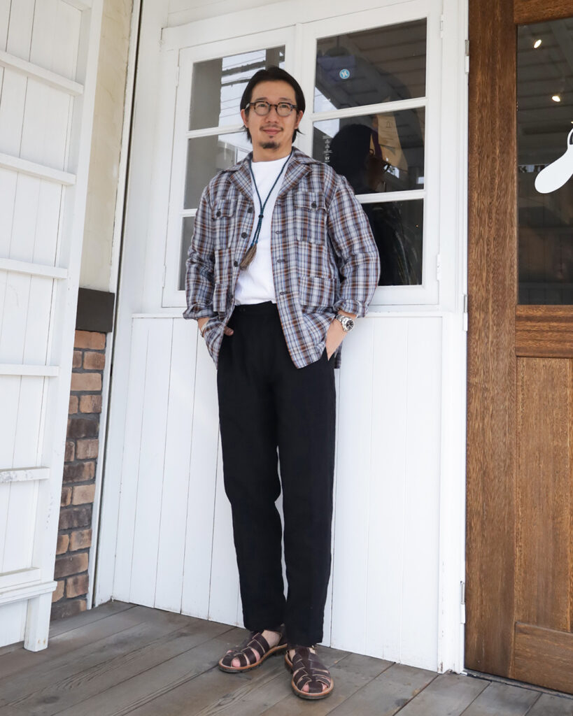夏になれば、コムアーチのリネンイージースラックスにグルカサンダルなんてお似合いになりますよ。