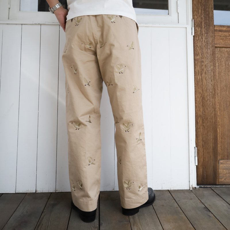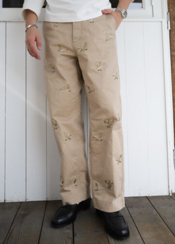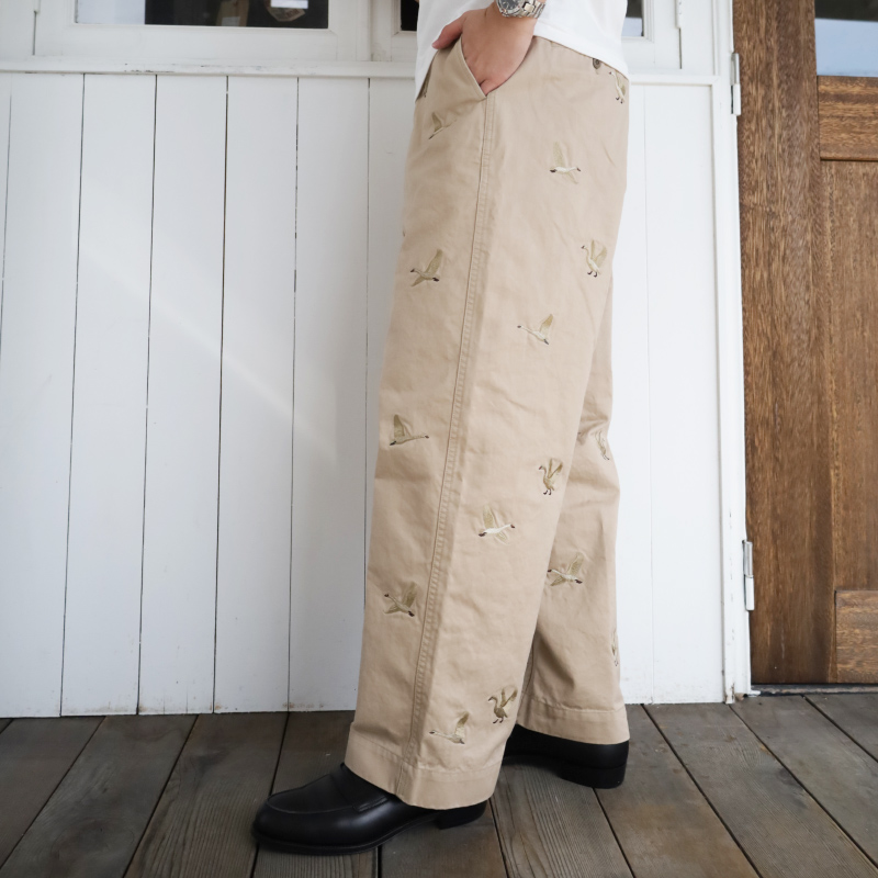 パンツ全体には白鳥の刺繍が。アウトドアなテイストがありますが、D.C.WHITEの純真な気持ちの意味も込めて白鳥を刺繍。