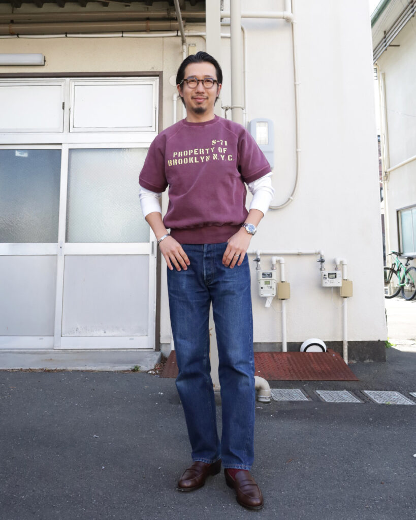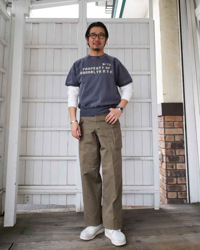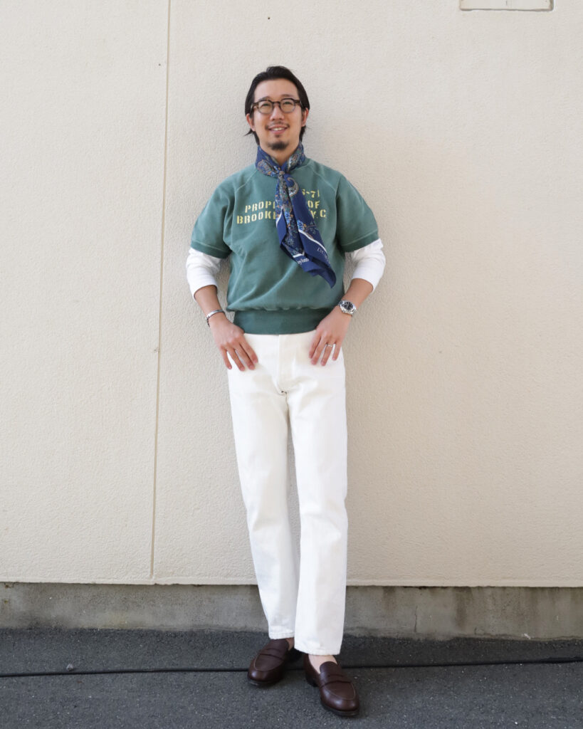 Tシャツだとこころもとない、そんなときに半袖スウェットは結構使えるんです。