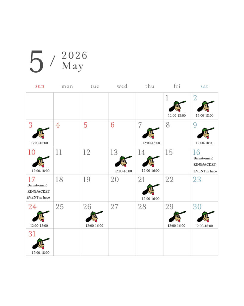 別途お休みする場合はインスタグラム、ブログにてお知らせ致します。