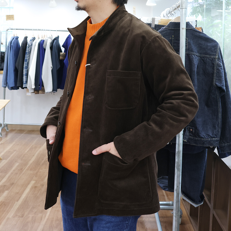 WORKERS、冬の半定番フォレスティエール。シャツやカバーオールのような絞りの無い型紙、ストレートな。これがアルニスのオリジナルを見て気づいたシルエットの特徴。