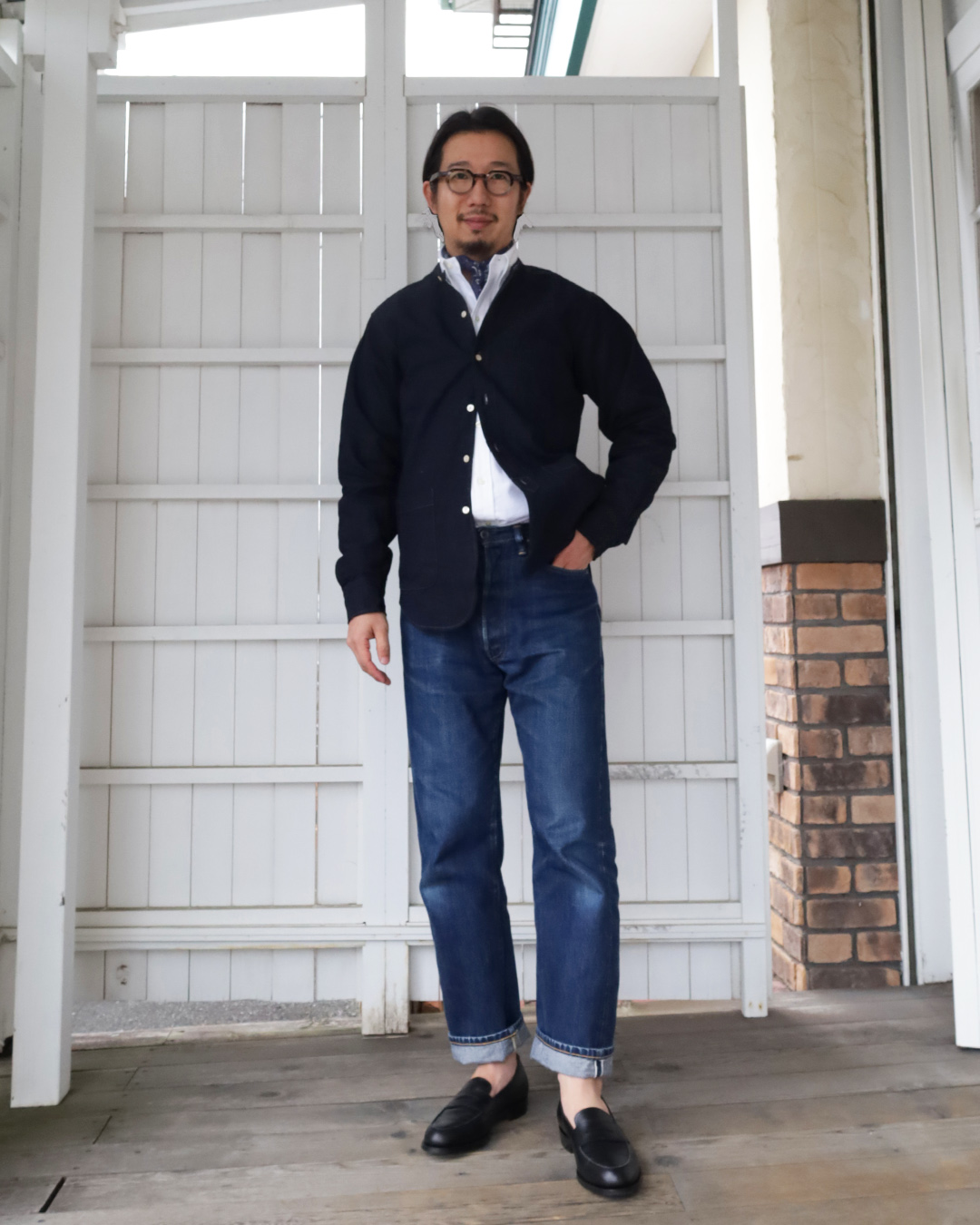 バンドカラーシャツのサイズ感を参考にしてくださいませ。