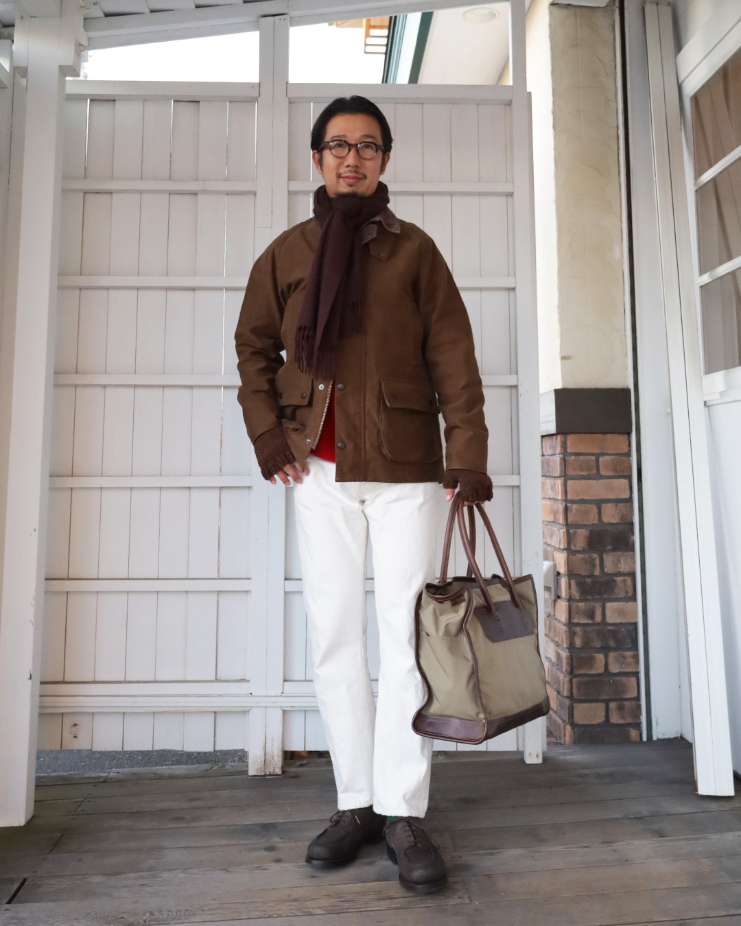 ジャケットのスタイルのお供から、カジュアルな着こなしまで幅広くお供できる鞄です。
