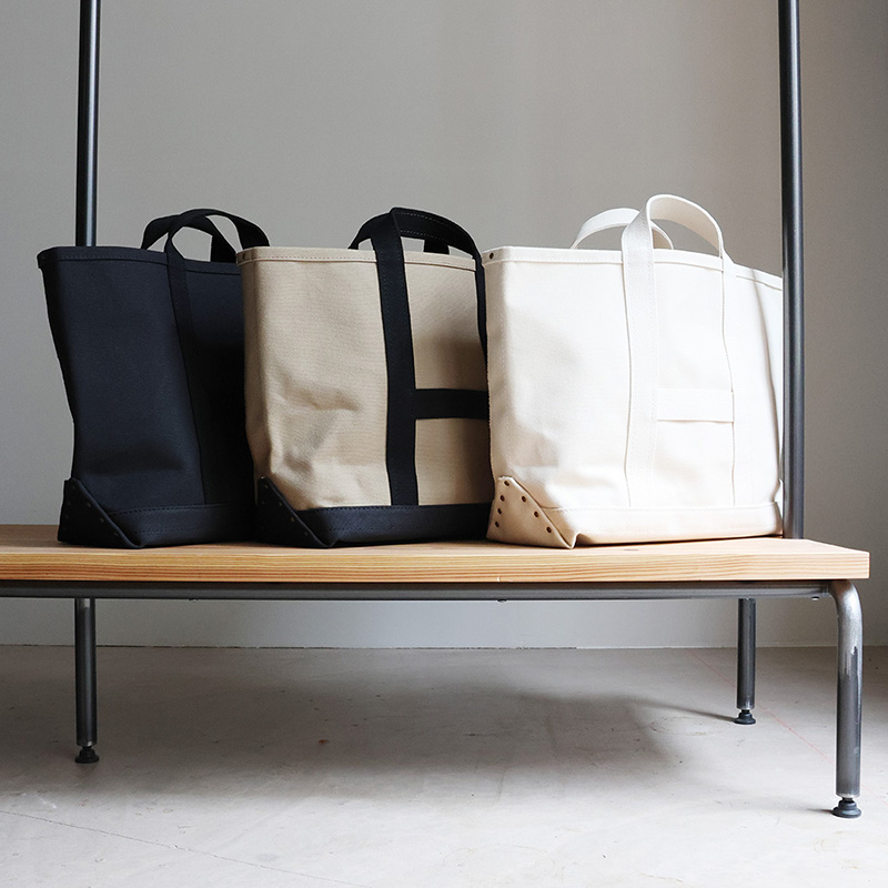 新作の〈BS TOOL TOTE〉は、太番手キャンバスにテープと手打ちリベットを組み合わせたインダストリアルな仕上がり。