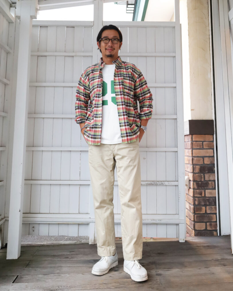 Champi⚪︎nのヴィンテージなどでも見られる裾部分のタタキタグが外れ、ステッチのみ残る絶妙なインスパイアデザインも男心をくすぐります。