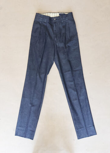 股上が深めながら、ヒップが綺麗に収まる立体的なつくりがドレス仕立てならでは。ゆるやかに裾に向かってテーパードが入り、細過ぎず太過ぎずな程よいバランス。