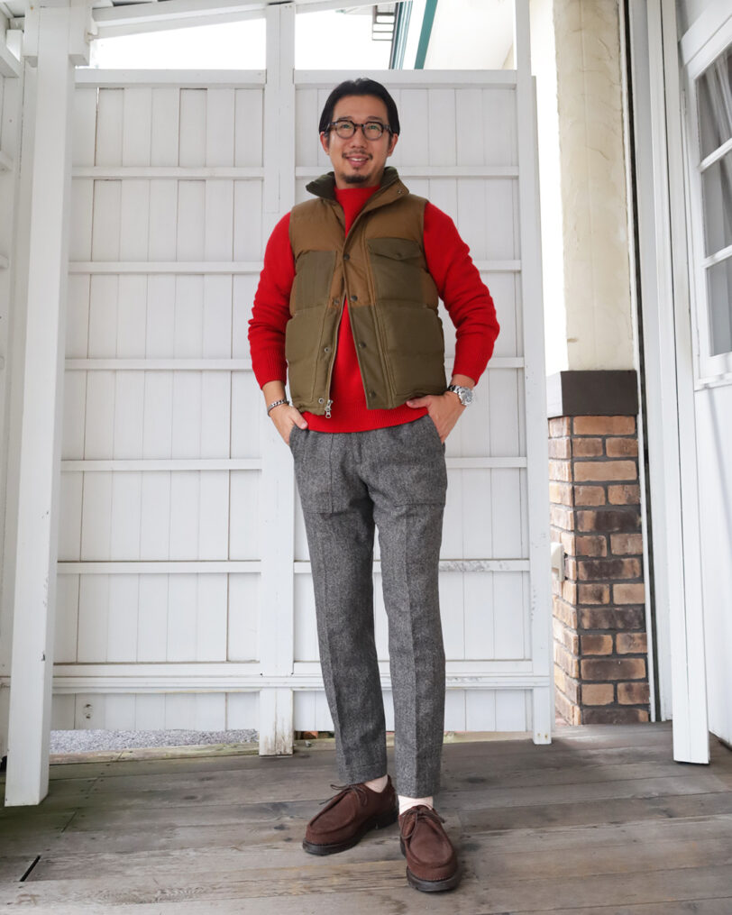 comm.arch.の冬の定番”Hand Framed Saddle B.B “をカシミヤ素材にて別注致しました。