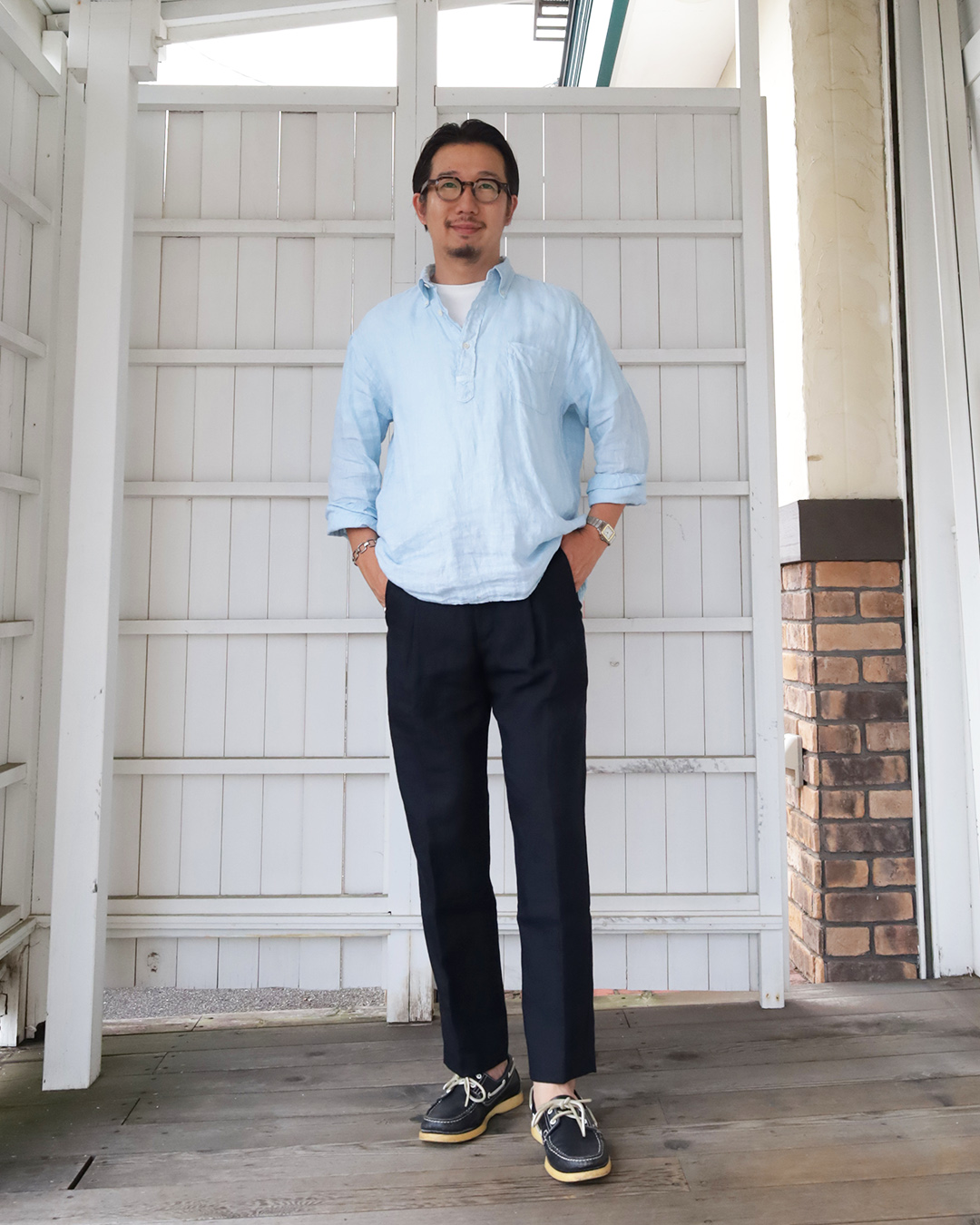 本当に涼しく快適で穿けますし、なによりどこか品良く見えるのがコムアーチらしいデザインの落とし所。