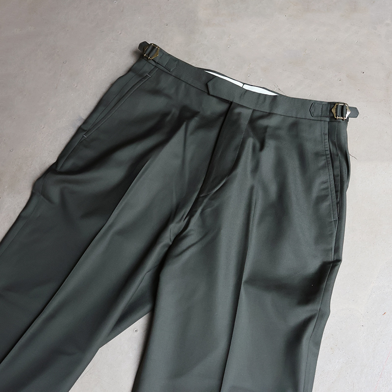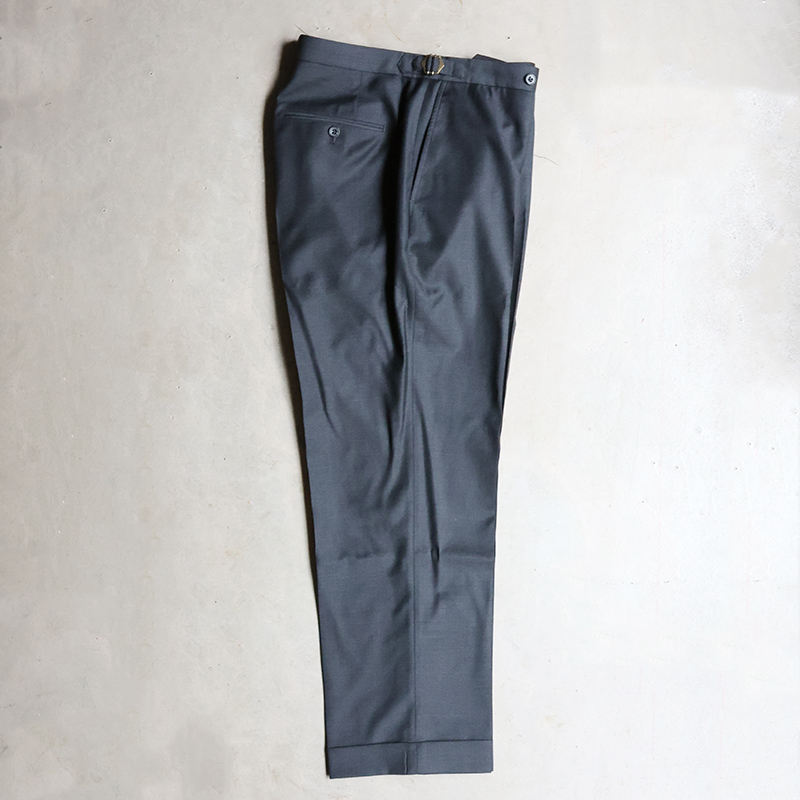 仕立てたトラウザーのようにドレススタイルからデイリー使いまで幅広いシーンで活躍するトラウザーです。