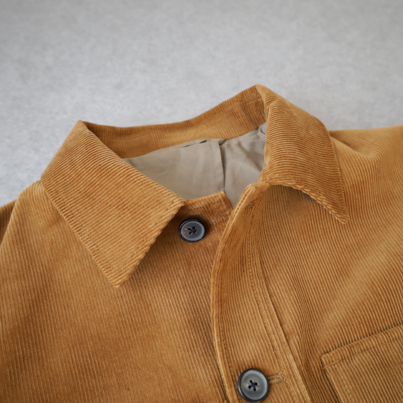 素材には発色豊かな12ウェールのコーデュロイを採用。上品な光沢に肌触りが滑らかな質感で気持ちがいい。