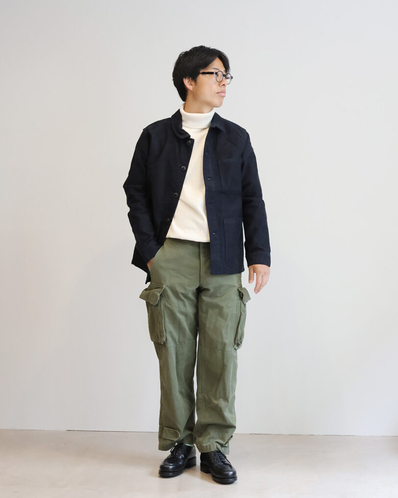 50年代のフレンチカバーオールを元にデザインされたFrench Mleskin JKTです。