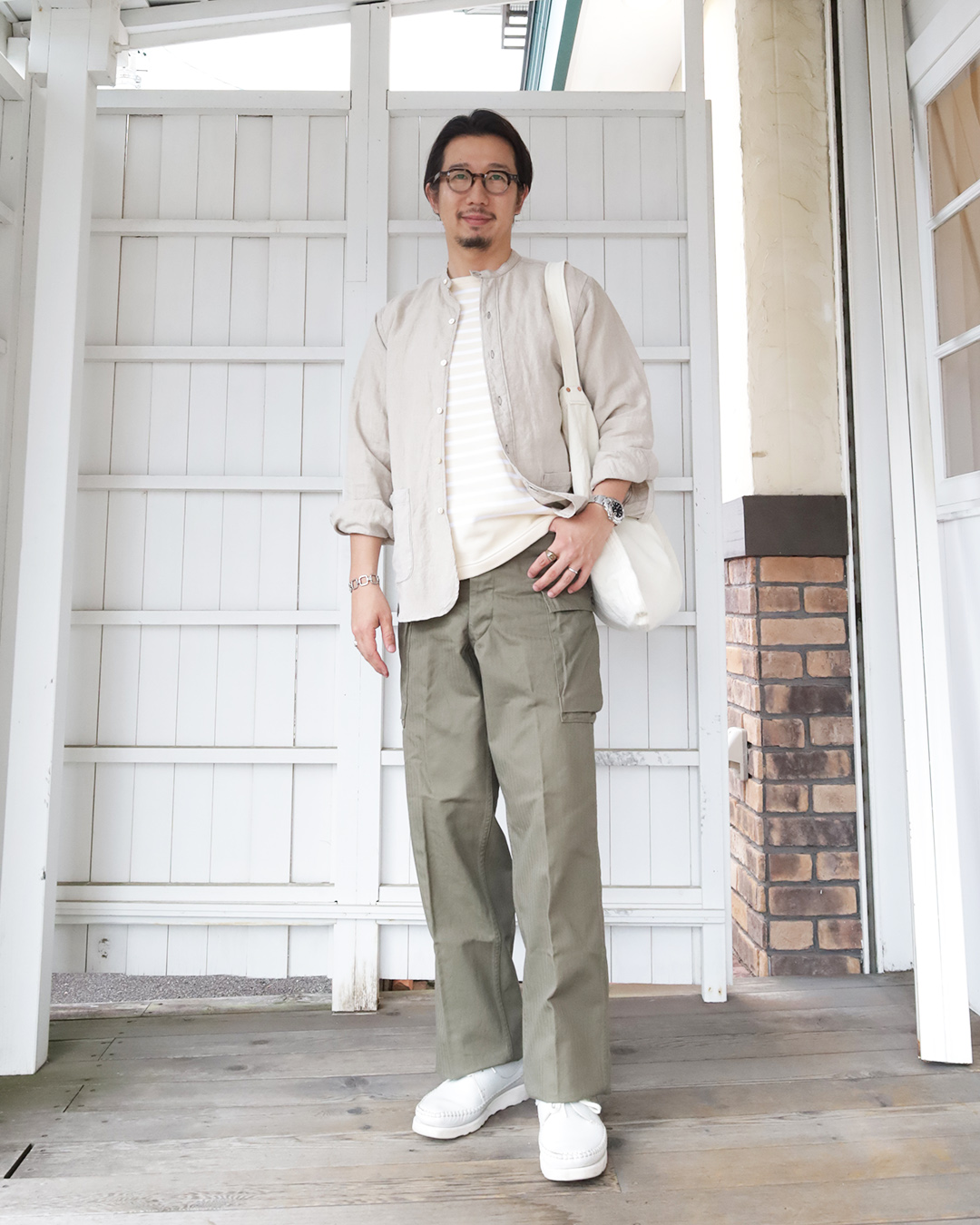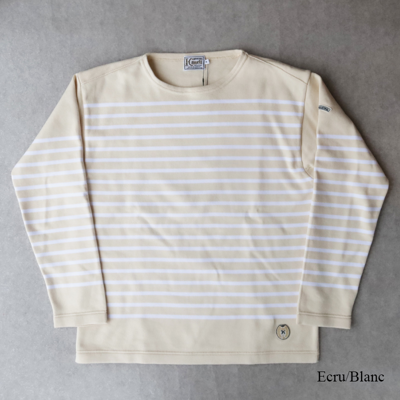 一般的なバスクシャツ よりもボートネックの幅が小さいので、一枚で着ても問題がないのが嬉しいところ。