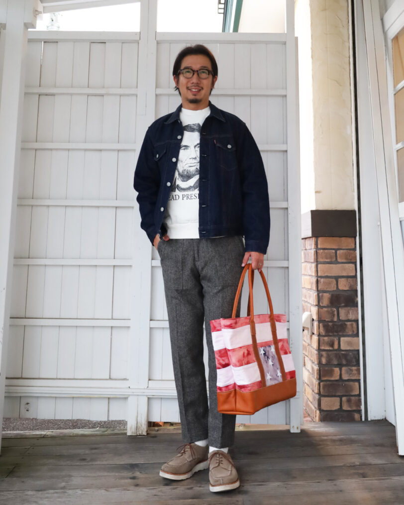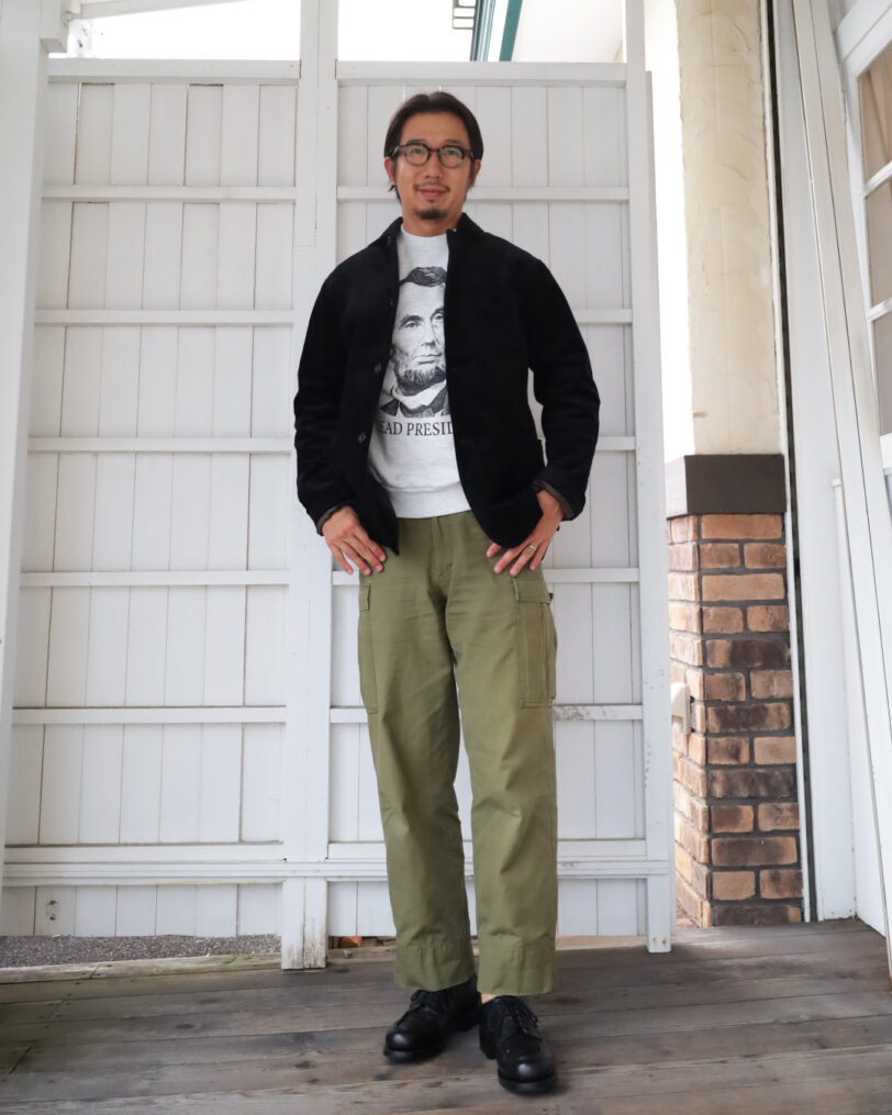 シルエットは90年代のボディをベースにパターンを起こしているので、肩、身幅はそれになりにゆとりがありますが、裄丈、着丈は日本人でも着用できるバランス感です。