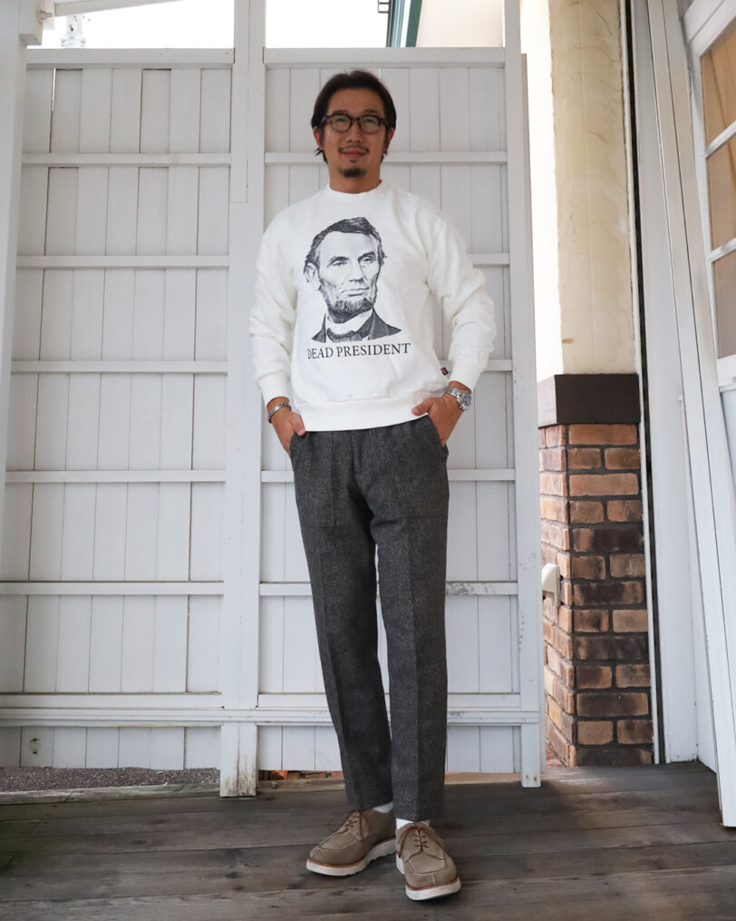 なんだか懐かしい雰囲気もありながら、現代の人が着用できるようにアレンジを怠らない。貴重なアメリカ製のスウェットです。