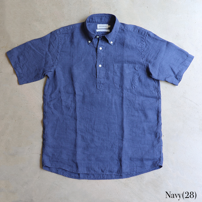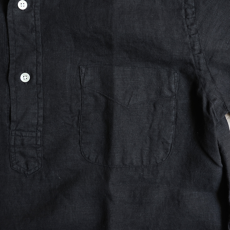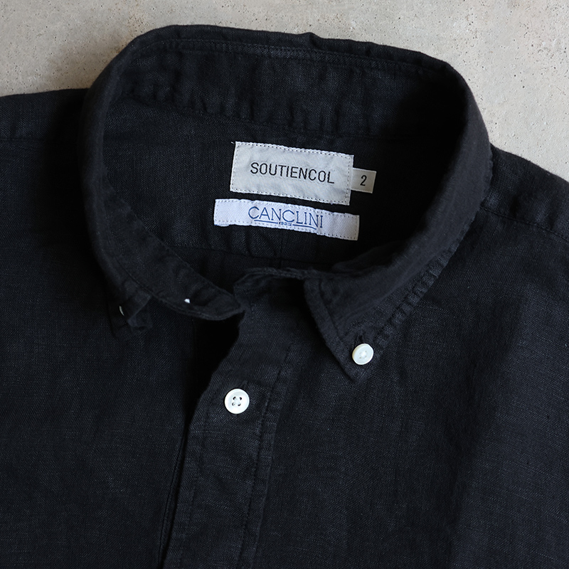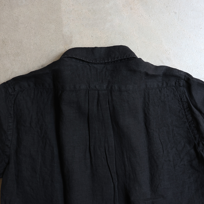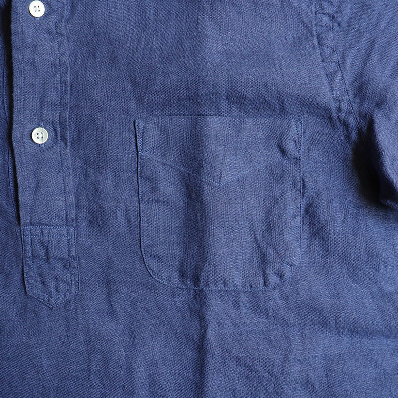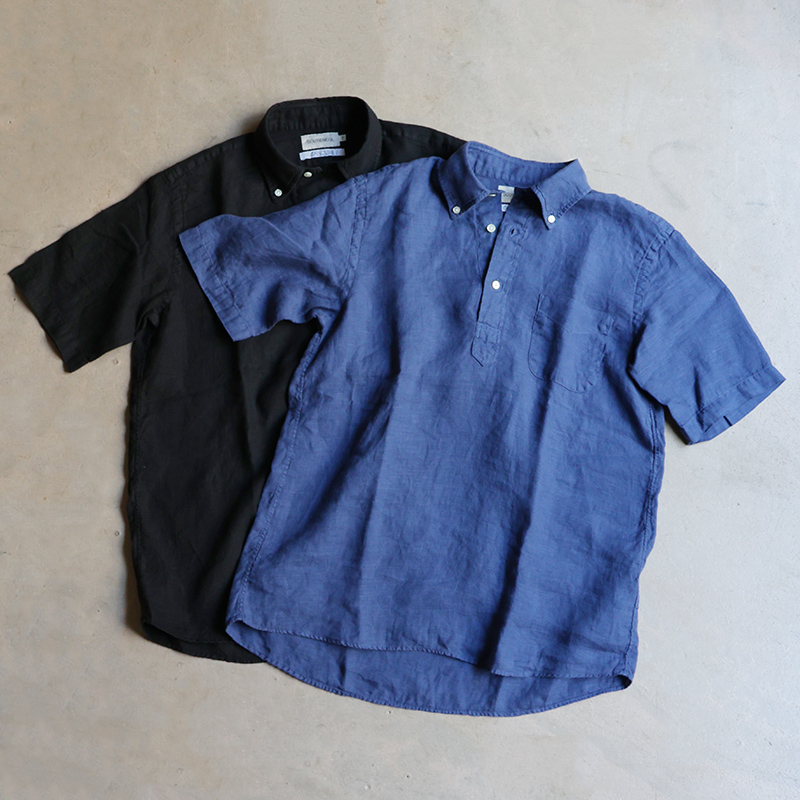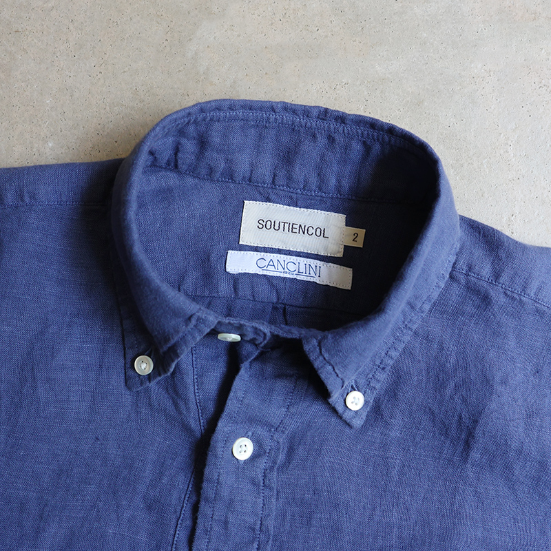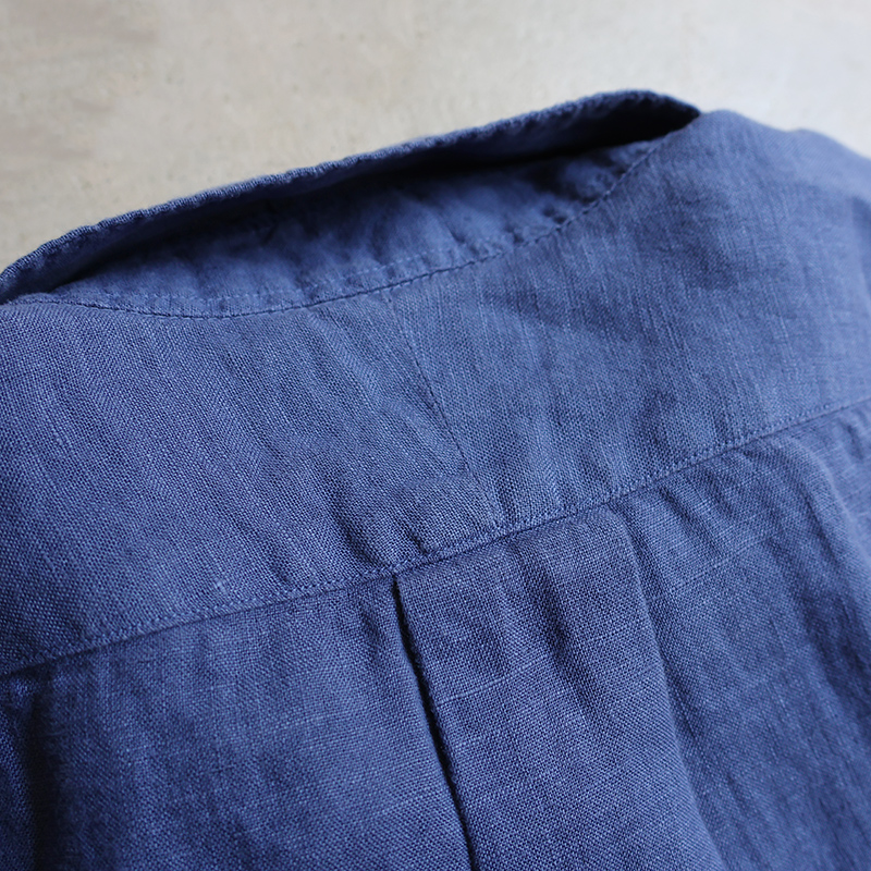 素材はイタリア”CANCLINI社”のリネンを国内で染め上げたもの。滑らかな質感で、着心地抜群。汗をかいても蒸れにくく、乾くのが早いので日本の夏でも快適にご着用いただけます。天然の機能素材です。