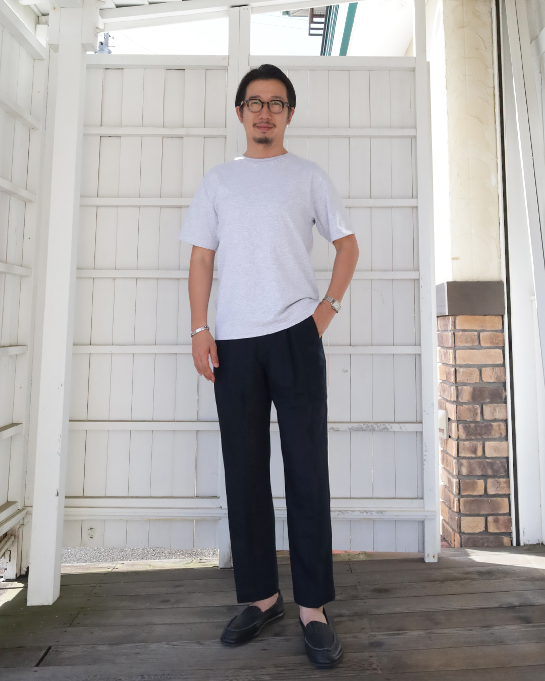 詰まり気味のクルーネックはフライスリブで首のシワが気になる方におすすめですし、インナーとしての見栄えも良い。