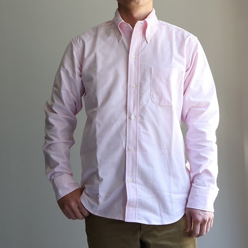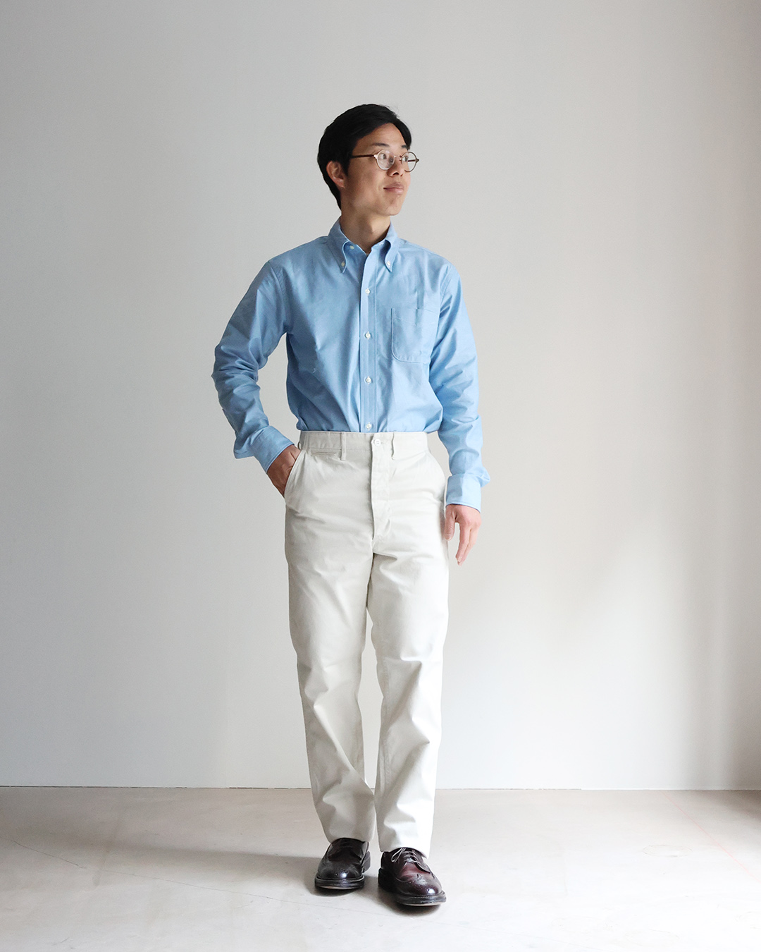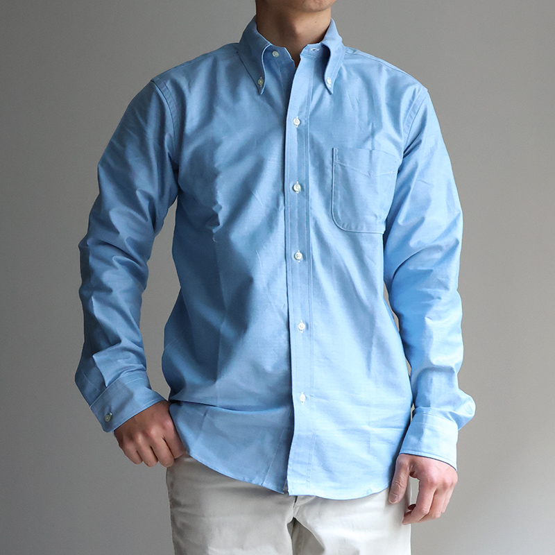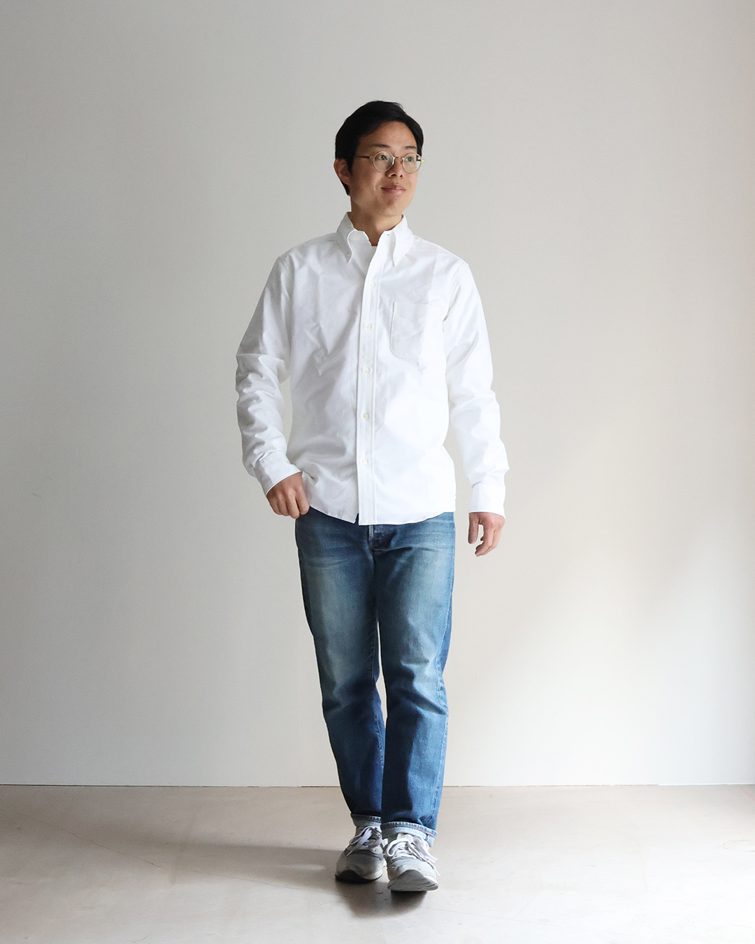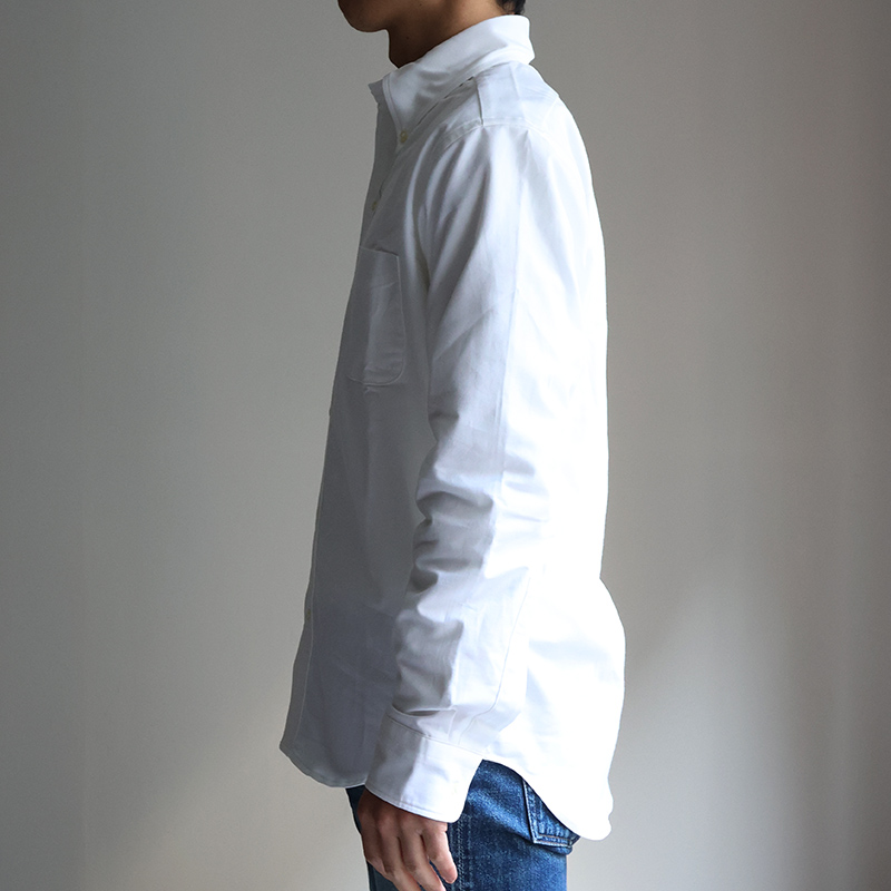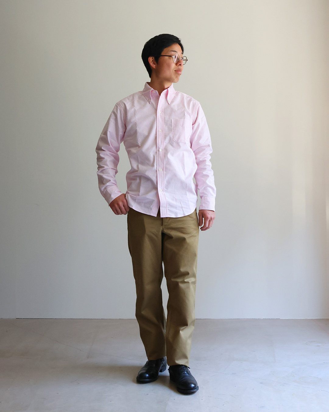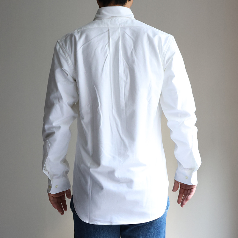 良い T シャツが見えちゃう」が、なんともラフで良いのです。本来、BD はアメリカントラッド。ア メリカのオフィスや学校で着られたボタンダウンシャツが、古着で日本に着てカジュアルに転用され ¥18,700(税込) ていった。ボタンダウンシャツはカジュアルと、ドレスの合間の特殊な存在であることがわかります。 素材はすべてオックスフォード、5 オンス程度。真夏以外、春・秋は 1 枚で。冬はインナーに。